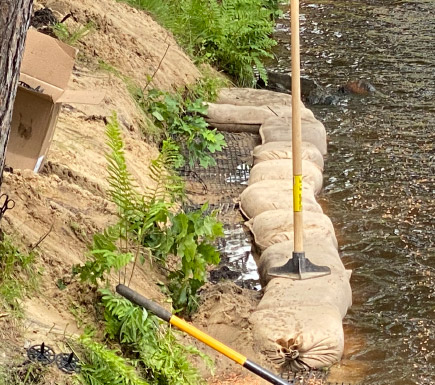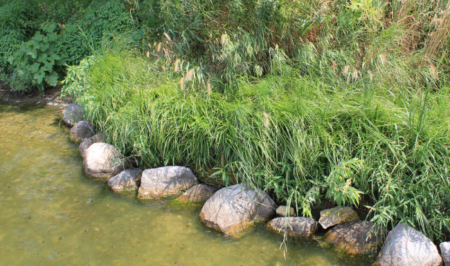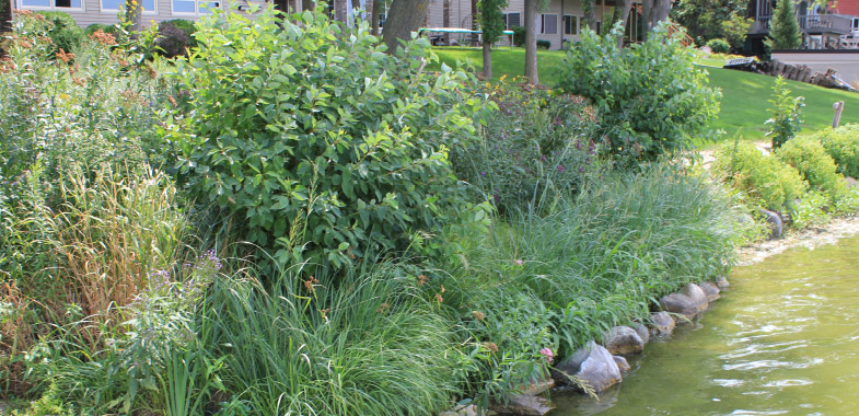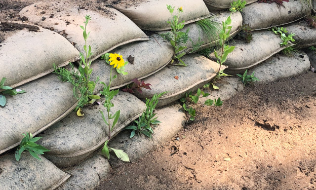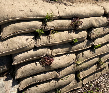 For high water energy sites, GroWall can be combined with hard armoring as a vegetative buffer or used above the water level to encapsulate the shoreline and reduce erosion.